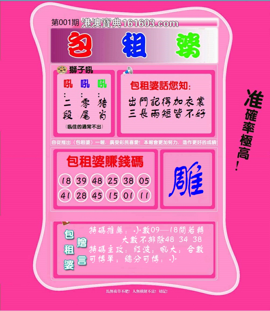 准确率高达90%,期期挑出12-18码 ____________★____________ 【九肖】 001期【鼠狗马猴兔虎猪鸡羊】开????? 011期【猴羊虎龙牛狗蛇马猪】开????? 010期【马猪狗羊虎牛龙鸡猴】开06鼠错 009期【龙羊蛇虎牛狗猪兔马】开26龙对 008期【鼠猪羊兔猴马鸡蛇牛】开12马对 007期【马鸡虎羊狗鼠龙牛猴】开32狗对 006期【鸡羊马虎猪狗猴鼠蛇】开30鼠对 005期【羊马牛兔龙鸡蛇狗猪】开19猪对 ____________★____________ 【四头】 001期【1-4-0-3】开?????? 011期【0-1-4-3】开?????? 010期【1-3-0-4】开06鼠对 009期【0-3-4-1】开26龙错 008期【3-2-4-1】开12马对 007期【0-1-3-4】开32狗对 006期【4-3-1-0】开30鼠对 005期【3-1-0-2】开19猪对 ____________★____________ 【四行】 001期【金-火-水-木】开?????? 011期【金-土-火-水】开?????? 010期【水-火-土-金】开06鼠对 009期【金-土-火-木】开26龙对 008期【火-土-木-水】开12马错 007期【土-金-木-水】开32狗错 006期【金-土-水-木】开30鼠对 005期【水-火-金-木】开19猪错 ____________★____________ 【七尾】 001期【4-8-6-0-3-5-7】开????? 011期【6-8-2-4-5-7-3】开????? 010期【0-4-9-7-6-5-8】开06鼠对 009期【0-9-6-4-2-8-7】开26龙对 008期【6-7-5-8-4-9-0】开12马错 007期【2-8-4-0-7-3-1】开32狗对 006期【7-9-6-5-2-4-3】开30鼠错 005期【6-3-2-4-0-7-5】开19猪错 ____________★____________ 【双波】 001期【蓝波+绿波】开????? 011期【红波+蓝波】开????? 010期【红波+蓝波】开06鼠错 009期【红波+绿波】开26龙错 008期【蓝波+红波】开12马对 007期【蓝波+绿波】开32狗对 006期【红波+蓝波】开30鼠对 005期【绿波+红波】开19猪对 ____________★____________ |